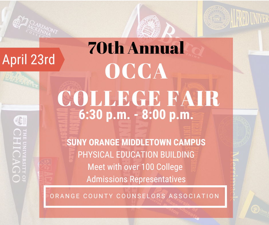 The Orange County Counselors Association is pleased to announce our 70th Annual College Night on Thursday, April 23, 2026. Our program will be hosted at the Orange County Community College.